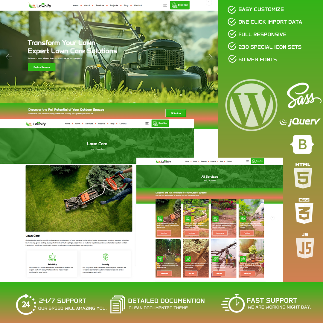 Lawnify isn’t just another WordPress theme; it’s a complete solution for lawn care and landscaping businesses. With its unmatched combination of style, functionality, and user-centric design, Lawnify empowers you to present your services in the most professional and compelling way. From sleek customization options to advanced technology integrations, every aspect of Lawnify is designed to elevate your business and captivate your audience.