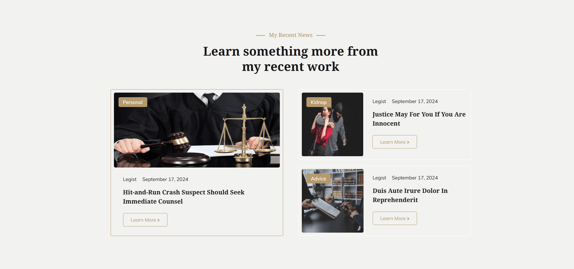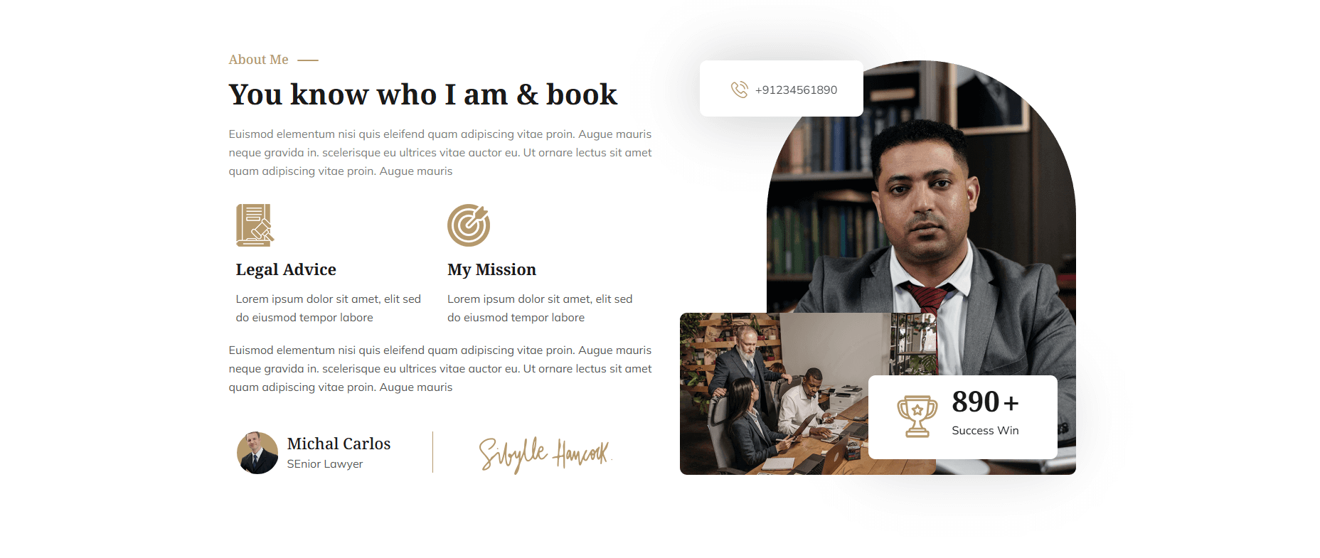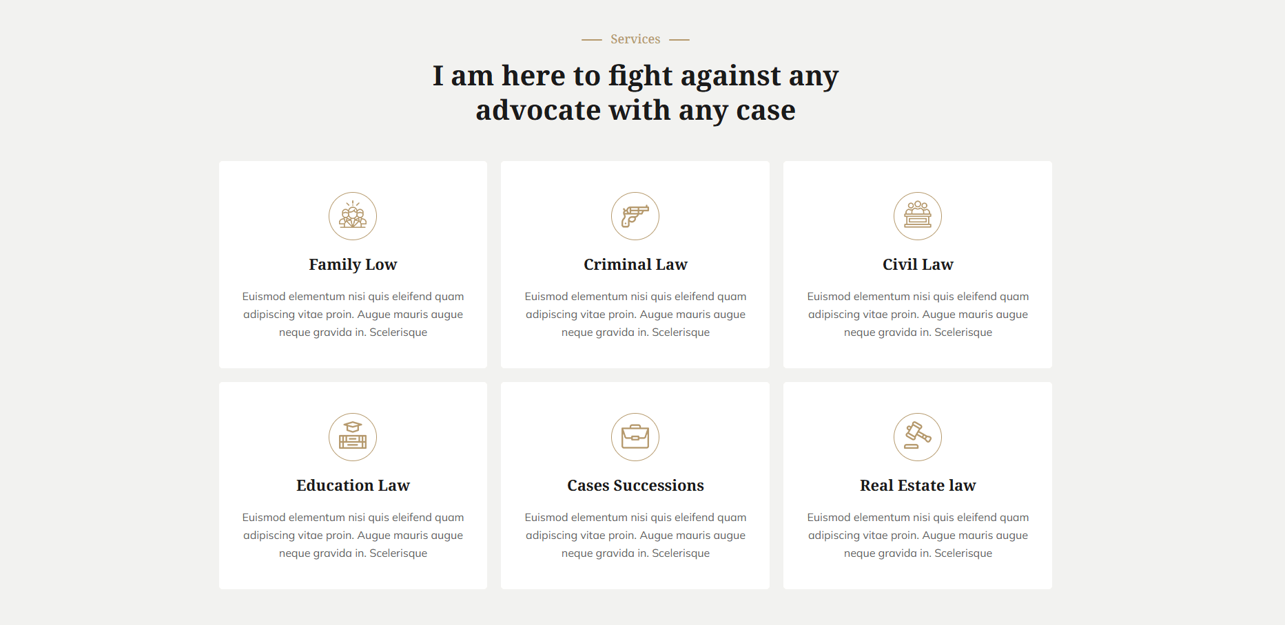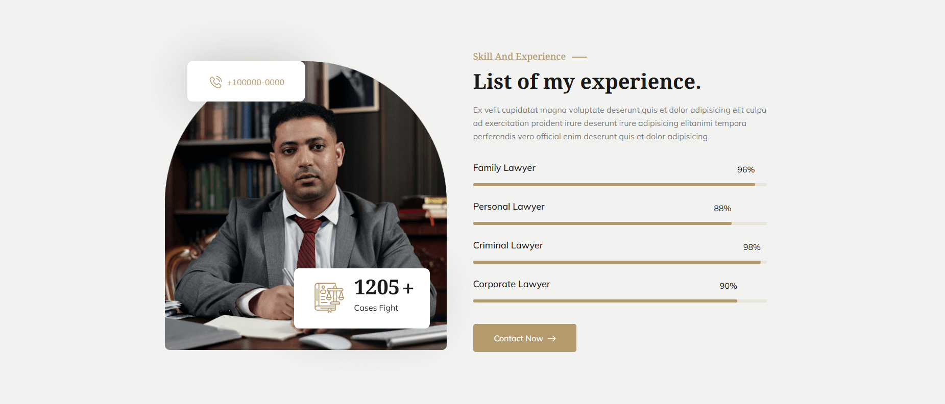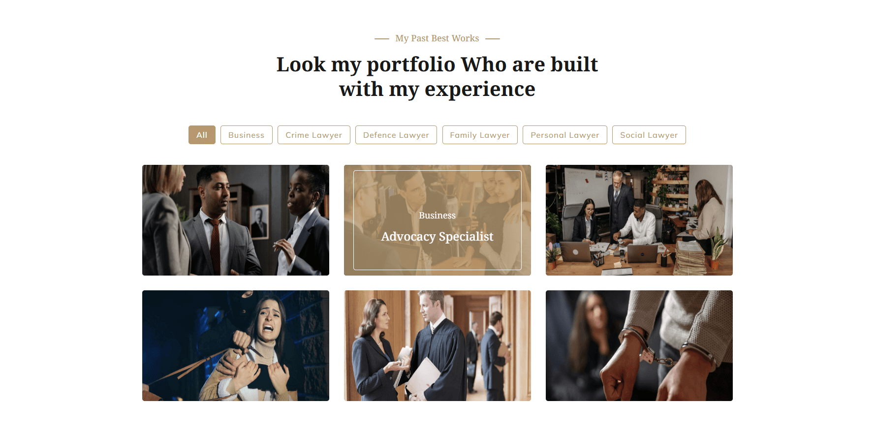 - Built for Lawyers: Dedicated sections for practice areas, case studies, client testimonials, and team profiles to showcase your expertise.