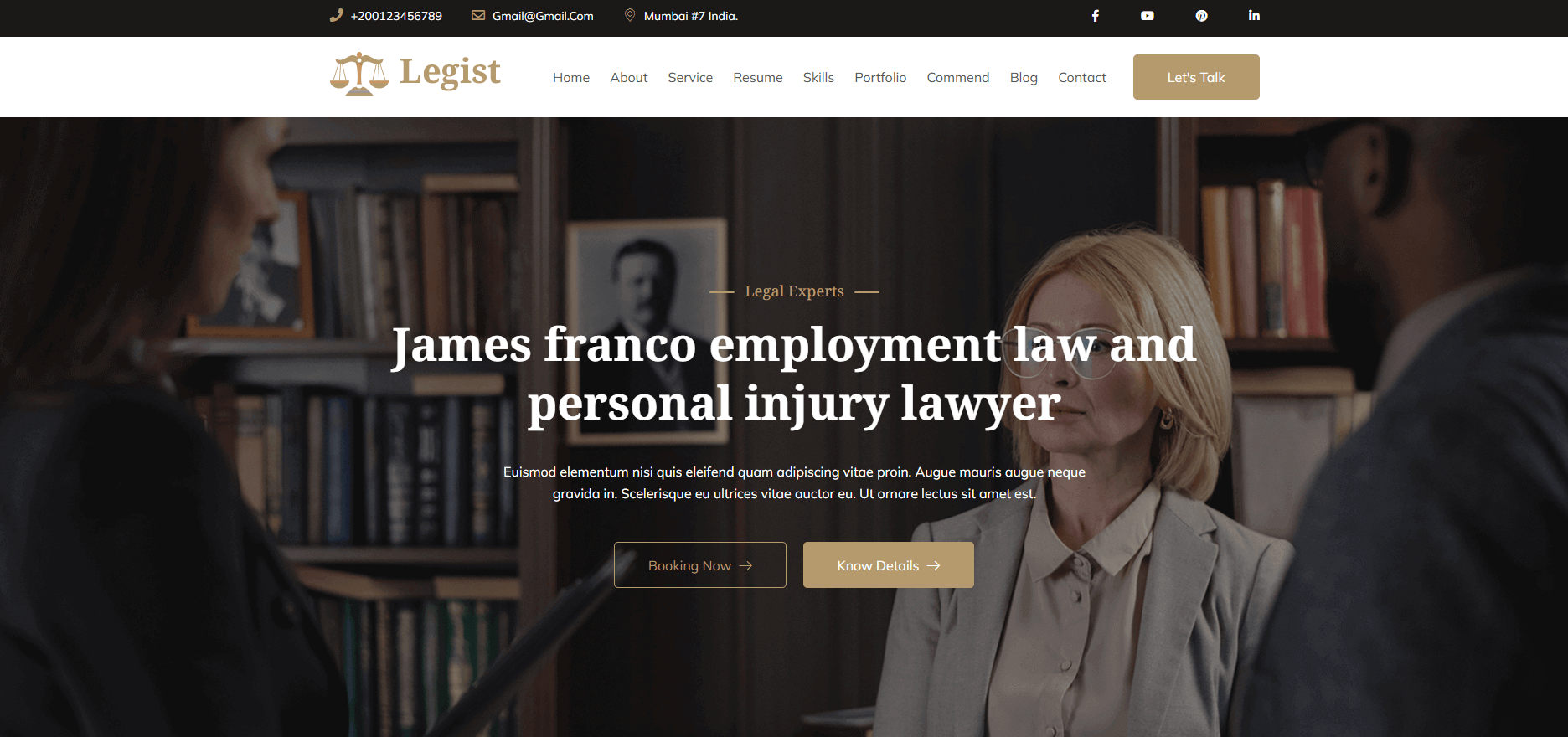 Legist is a sleek, clean, pixel perfect, modern design. and highly customizable WordPress theme tailored for lawyers, barristers, legal consultants, law firms, and legal professionals. This theme is designed to create a professional online presence with ease, offering a perfect blend of style and functionality. This theme offers fully responsive layouts, ensuring your site looks flawless on all devices. It includes pre-designed pages for practice areas, barrister profiles, case studies, and testimonials, making it easy to showcase your expertise and build trust with clients. The theme is built on a user-friendly framework, compatible with popular plugins like Elementor, Contact Form 7, and more Plugins, allowing for seamless customization and scalability. With a focus on speed, SEO optimization, and accessibility, Legist helps you rank better on search engines while delivering a smooth browsing experience.