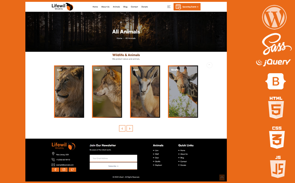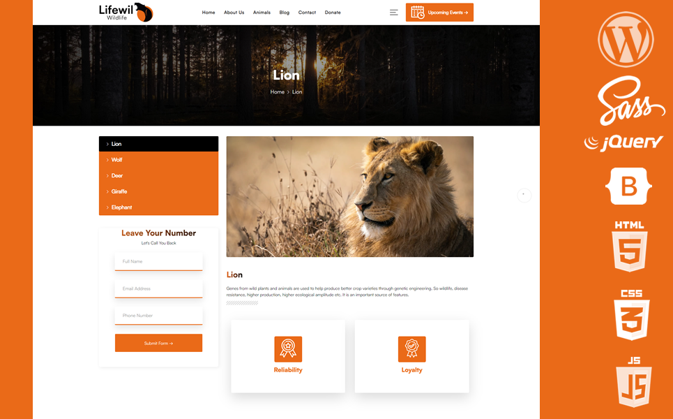 Lifewil WordPress Theme is a professional and straightforward wordpress theme made for Wildlife, Animals and Nature.