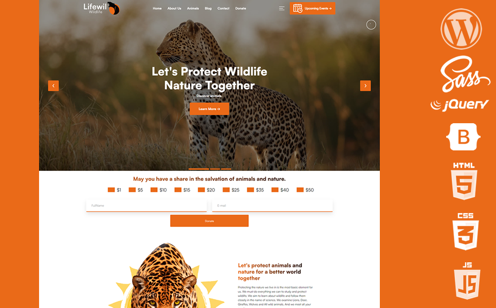 If you want to create a special website and collect donations to protect Nature and Animals, this template will be very special for you.