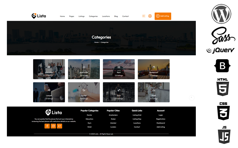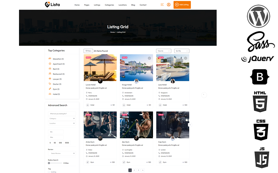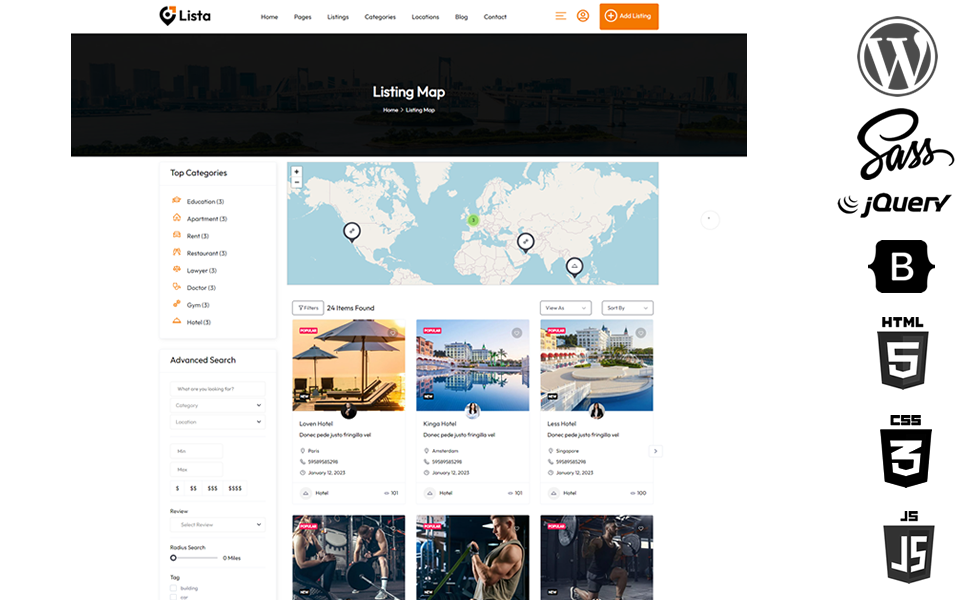Lista WordPress Theme, Directory Portal, Directory Listing, Job Portal, Doctor Portal, Lawyer Portal, Hospitals, Hotels etc. It is a professional wordpress theme for all yellow pages.