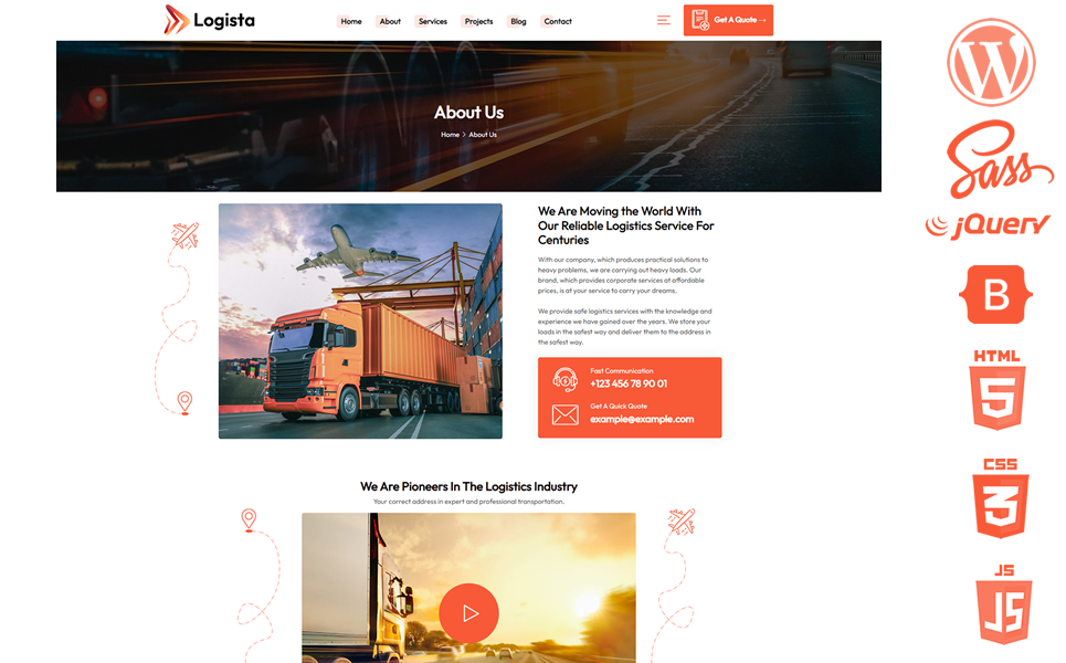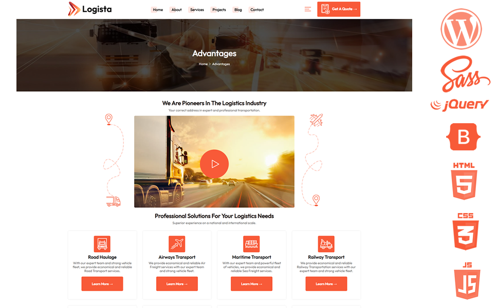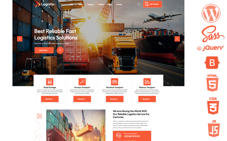 Logista WordPress Theme is a magnificent wordpress theme developed for Logistics, Transportation, Industrial, Logistics Services, Logistics Company and Entire Logistics Industry.