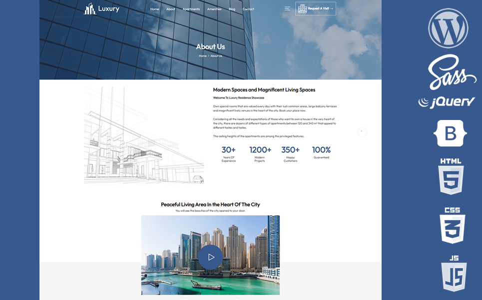 Luxury WordPress Theme is a new generation unique professional wordpress theme designed for Single Property, Apartment, Condominium, Real Estate, Villa, Residence, Single Building, Building Projects, Property Projects, Construction Projects, Construction, Real Estate and All Property Promotions.