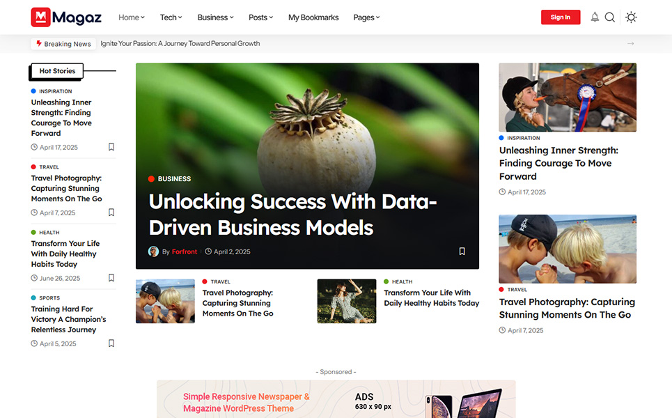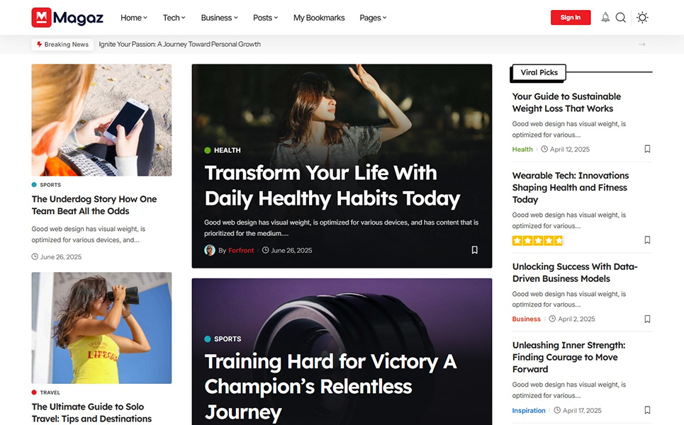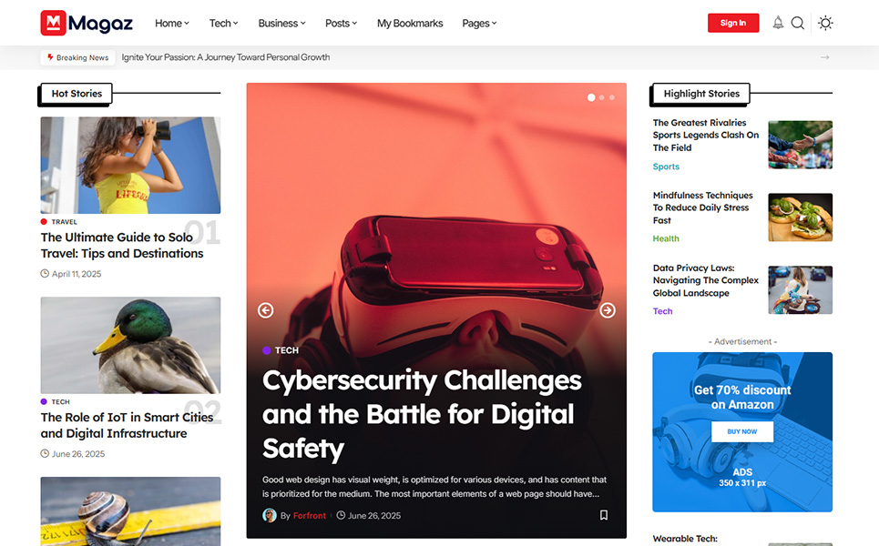 Ideal for a wide range of websites, including news portals, newspapers, magazines, blogs, and niche content like travel, food, fashion, beauty, lifestyle, photography, art, personal stories, and viral media. Also perfect for technology, business, politics, government, military, wildlife, nature, research, affiliate marketing, sports, gaming, video, cryptocurrency, medical, gadgets, phones, hardware, AI, electric vehicles, science, pets, animals, coffee shops, guides, schools, education, freebies, culture, architecture, recipes, and health.