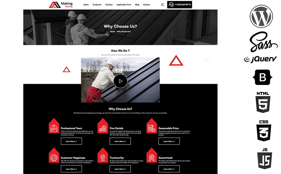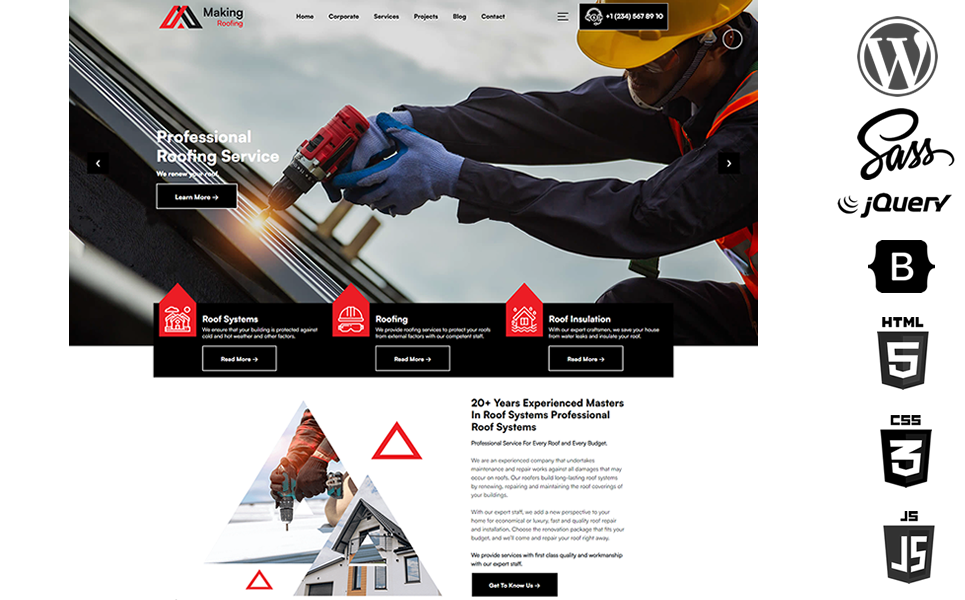 Making WordPress Theme is a corporate wordpress theme scripted for Roofing, Roofing Systems, Roofing Services, Architecture, Construction Services, Building, Inspection and All Roofing Industries.