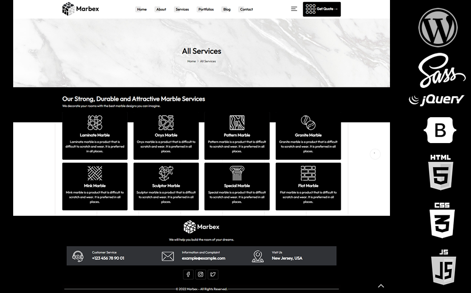 You will almost attract your customers with 3D effects and creative icon areas that we have added specially for marble isolite services.