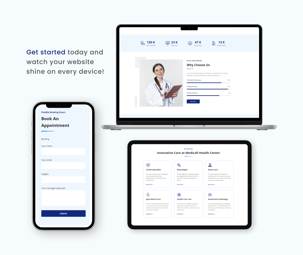 Create a professional and user-friendly medical, clinic, or hospital website with Medicall Pro. It’s designed to meet the needs of the healthcare sector, so start building your site today!