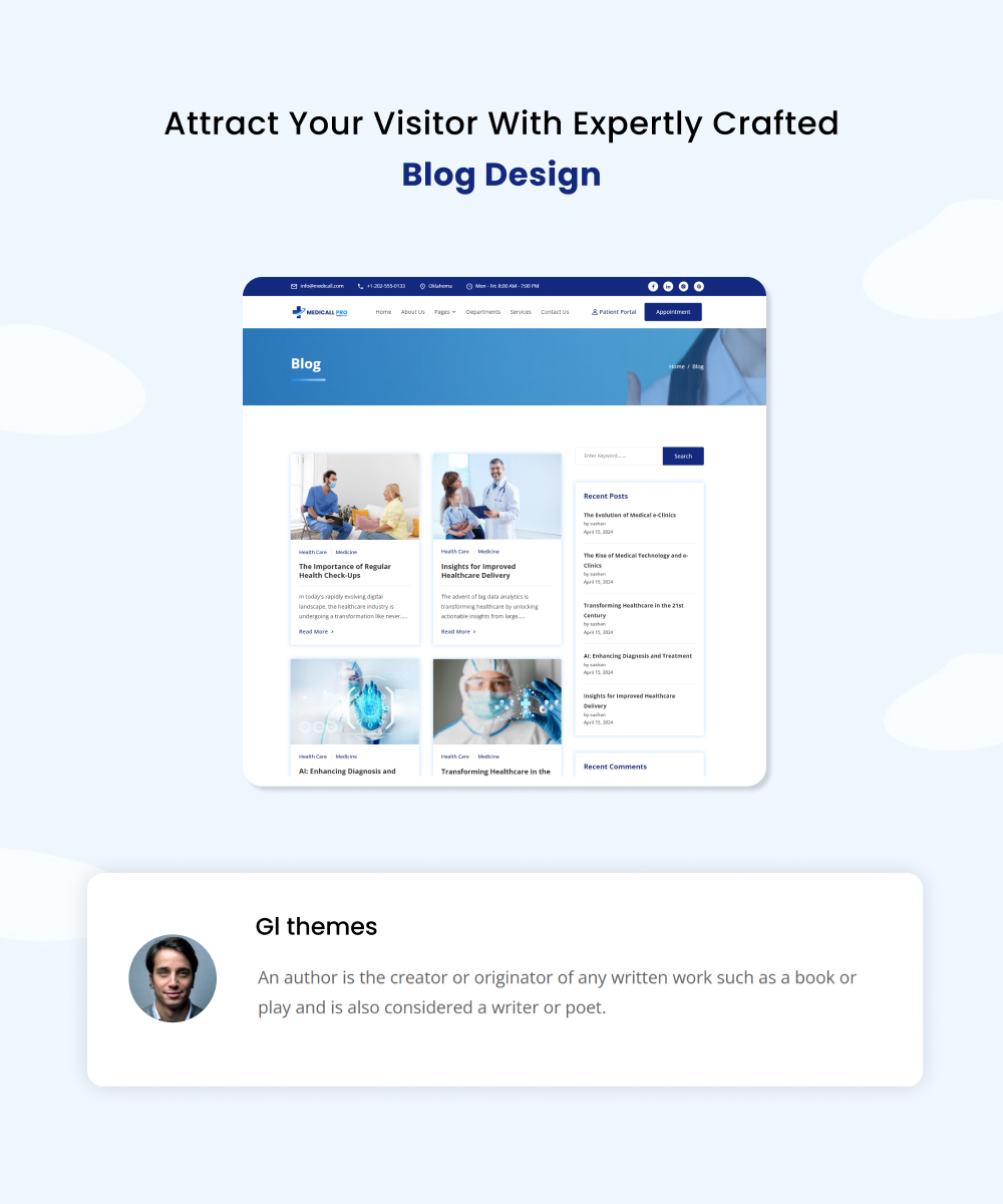 Medicall Pro is a sleek, lightweight WordPress theme designed specifically for hospitals, personal clinics, and health service businesses. The theme is professionally developed to showcase your business and services effectively in the online world. The theme is fully responsive, working seamlessly on all devices from phones to desktops. Plus, its user-friendly design makes it easy for visitors to navigate through your site. Medical Care not only looks great and is easy to use but also helps your website rank higher with its SEO-friendly design.