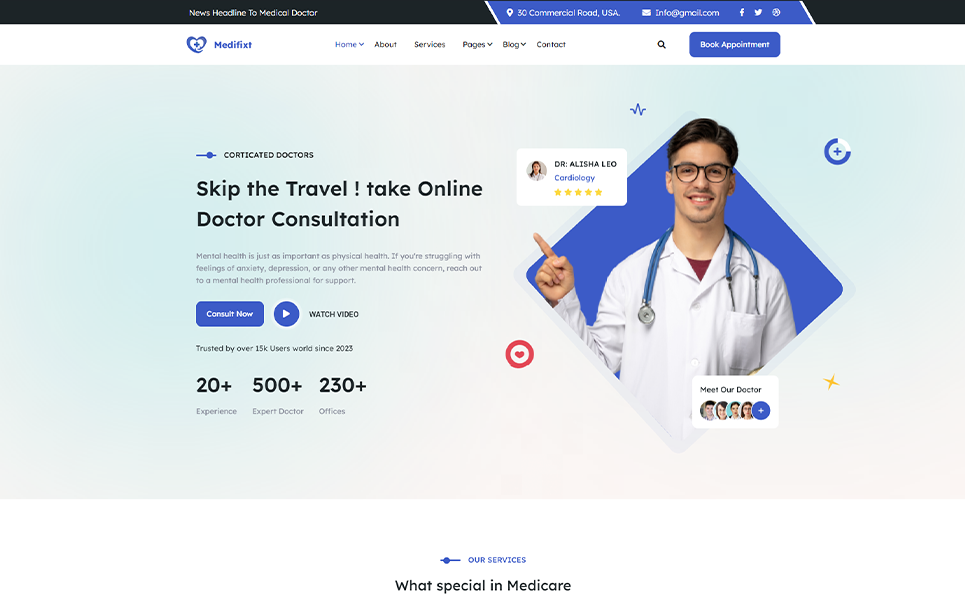 Medifixt is the best WordPress Theme offers exceptional ease of customization and is packed with robust features and a powerful admin panel, making it ideal for clients who want to build a high-quality website. Medifixt provides numerous features to create a professional-looking site with an attractive design, perfect for showcasing every aspect of your medical practice. You can also take advantage of its advanced functionalities to create detailed schedules for doctors.