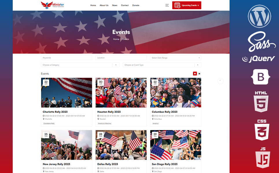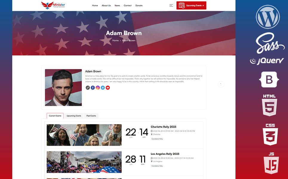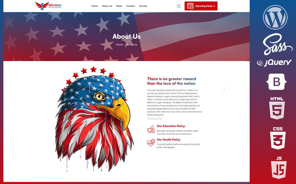 Minister WordPress Theme is custom WordPress Theme made for Political Candidate, Politician, Politics, Political Party, Government, State, Candidate and Political Events.