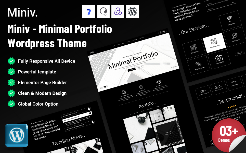 Miniv is a sleek, minimalistic WordPress theme designed for creating clean, professional portfolios with ease. It offers a user-friendly interface, customizable layouts, and responsive design, making it ideal for showcasing creative work, photography, or personal projects. With its focus on simplicity and elegance, Miniv allows users to highlight their content without unnecessary clutter, ensuring visitors have a seamless browsing experience. The theme typically includes features like easy customization options, multiple gallery styles, and compatibility with popular plugins to enhance functionality.
