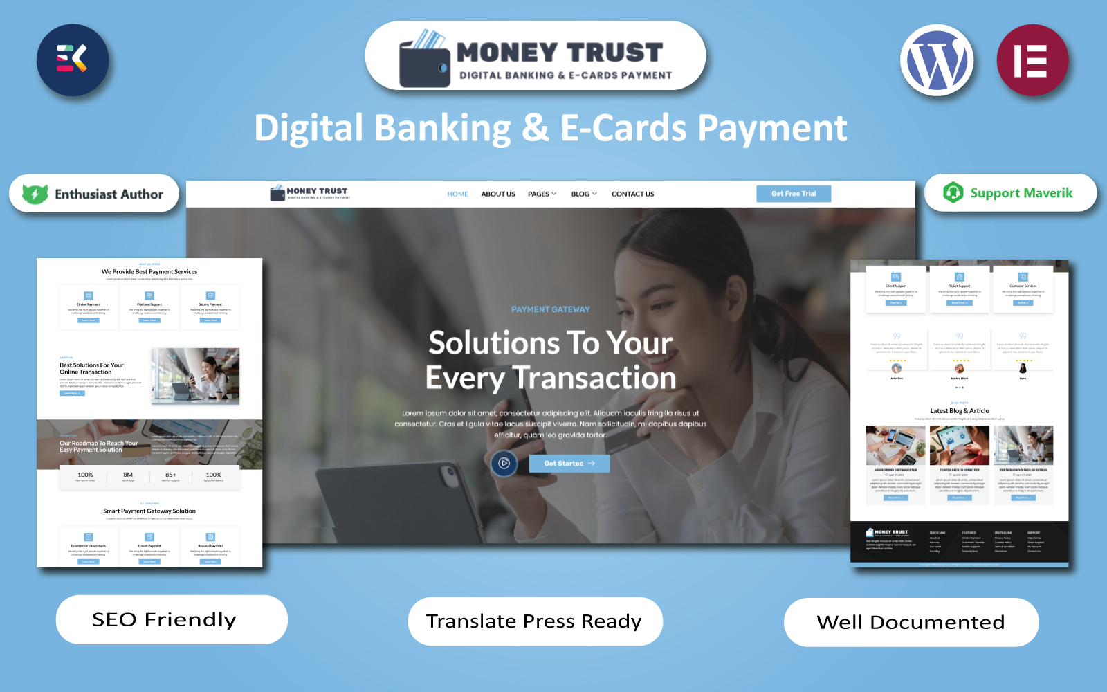 Money Trust - Digital Banking & E-Cards Payment WordPress Elementor Template WordPress Theme