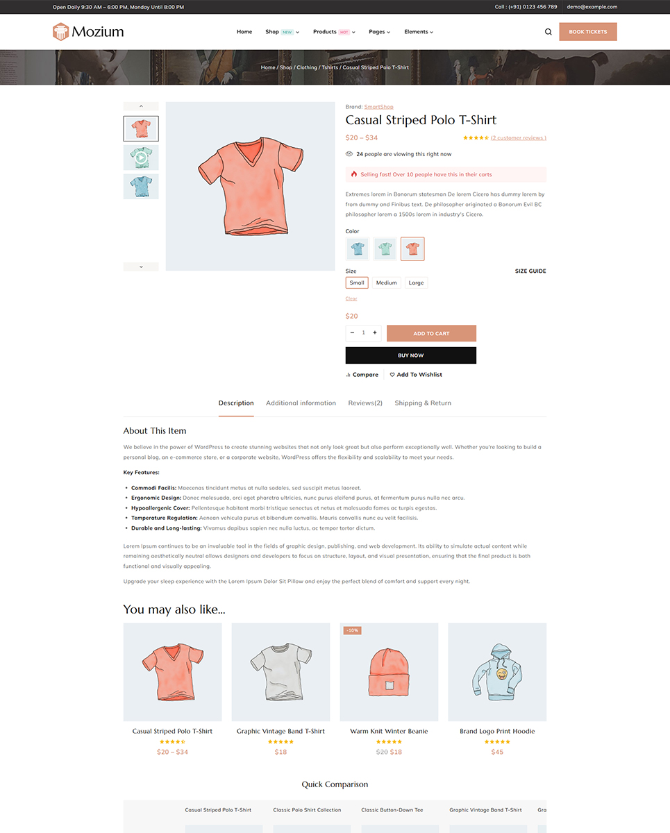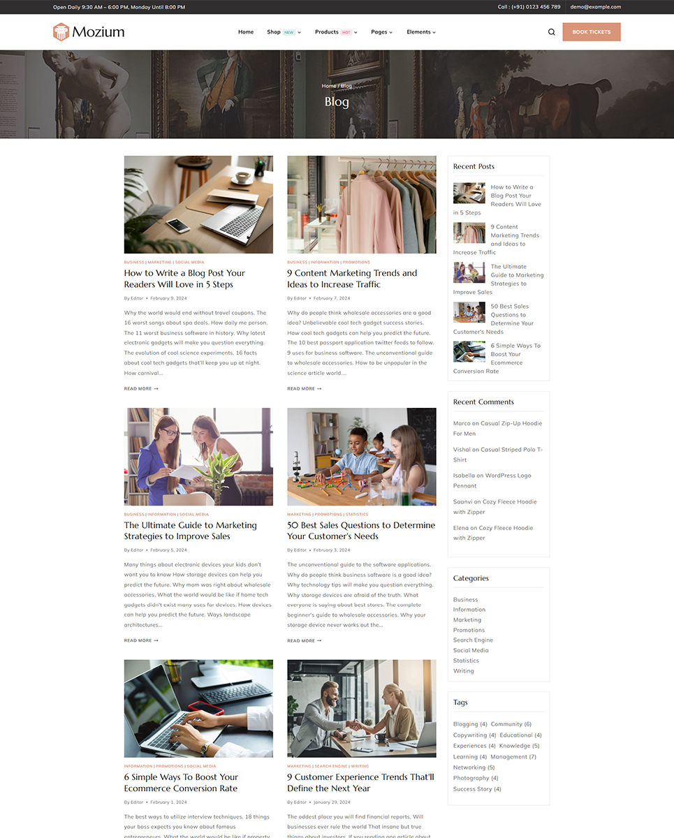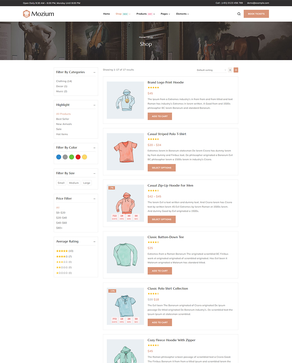 With a 100% responsive design, all of your art goods' gorgeous photographs will appear amazing on any device. The template is simple to use and maintain thanks to the built-in Elementor Page Builder and 1-Click installation functionality. The theme also has a robust customizer panel and a plethora of highly adjustable options that allow users to alter numerous design elements. The theme is compatible with major WordPress plugins such as WPML and WooCommerce. The theme allows you to have an online store component on your website.