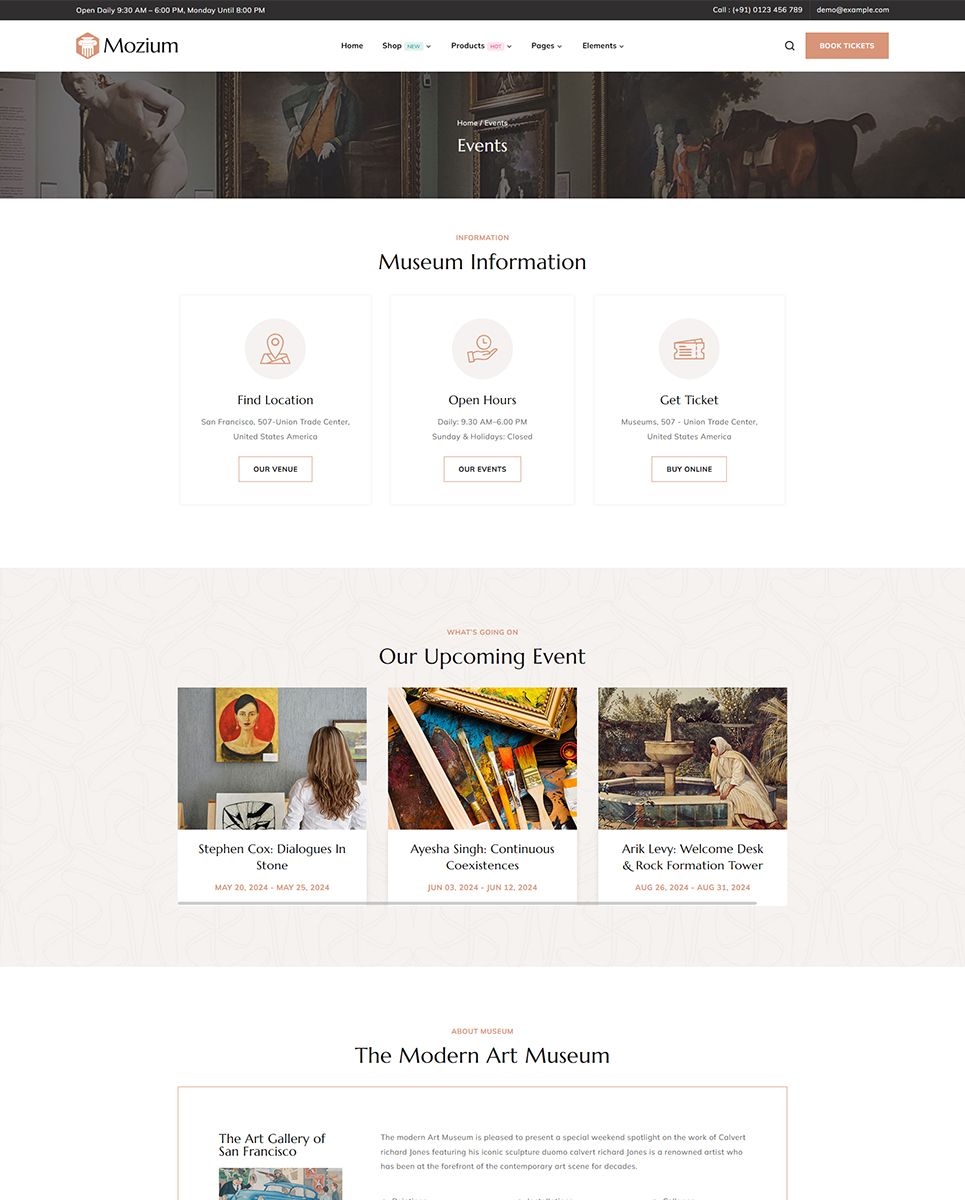 Mozium - Museum and Art Gallery Elementor WordPress Responsive Theme WordPress Theme