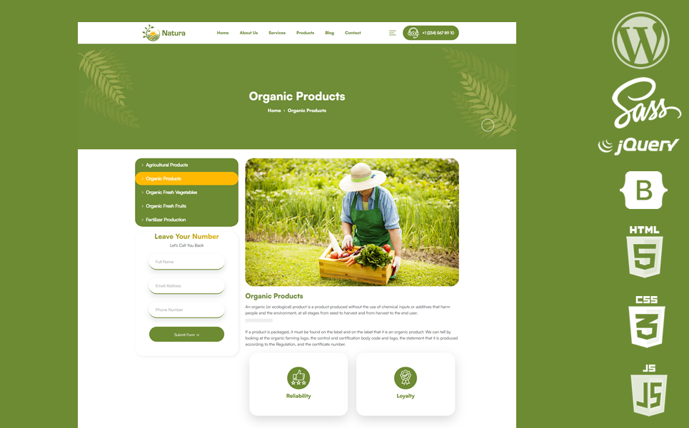 Natura WordPress Theme is advanced features WordPress theme made for Farming, Organic Farm, Organic Farming and All Agricultural Services.