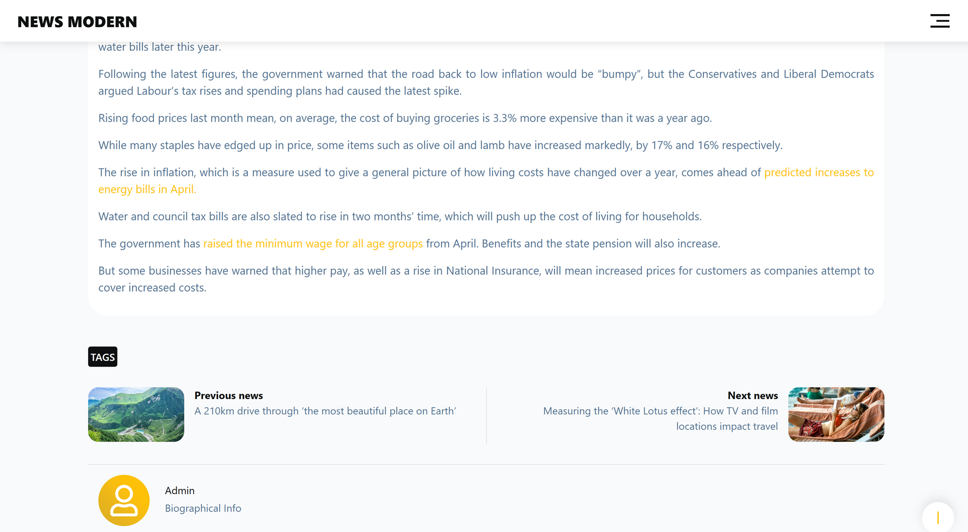 With News Modern, you’re not just building a website—you’re creating an experience. Designed with the latest web trends and usability in mind, this template is perfect for news outlets, bloggers, journalists, or anyone looking to deliver fresh, timely content in a modern, professional format.