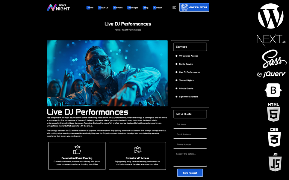 Introducing NovaNight, a WordPress theme meticulously crafted for nightclubs, entertainment venues, and event organizers who demand nothing less than the best. With its sleek design, dynamic features, and powerful functionality, NovaNight is the ultimate solution for creating an online presence that resonates with energy, excitement, and luxury. Whether you're promoting the hottest nightclub in town or organizing exclusive events, NovaNight delivers a captivating digital experience that keeps visitors engaged and coming back for more.