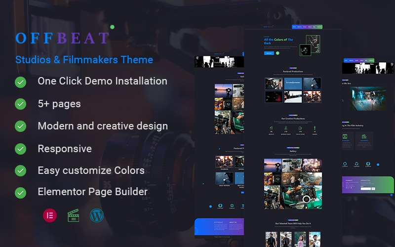 Introducing Offbeat - Movie Studios & Filmmakers Theme, a versatile and responsive WordPress theme designed specifically for innovative movie studios and filmmakers. Utilizing the power of Elementor Page Builder, this theme offers endless possibilities for creating stunning and unique websites.