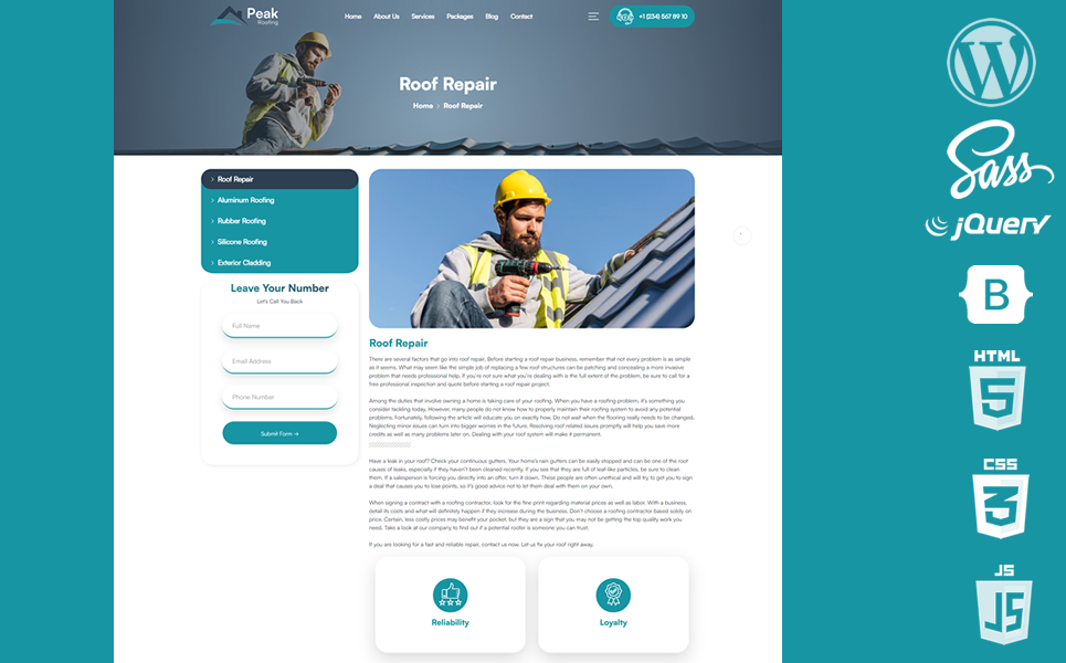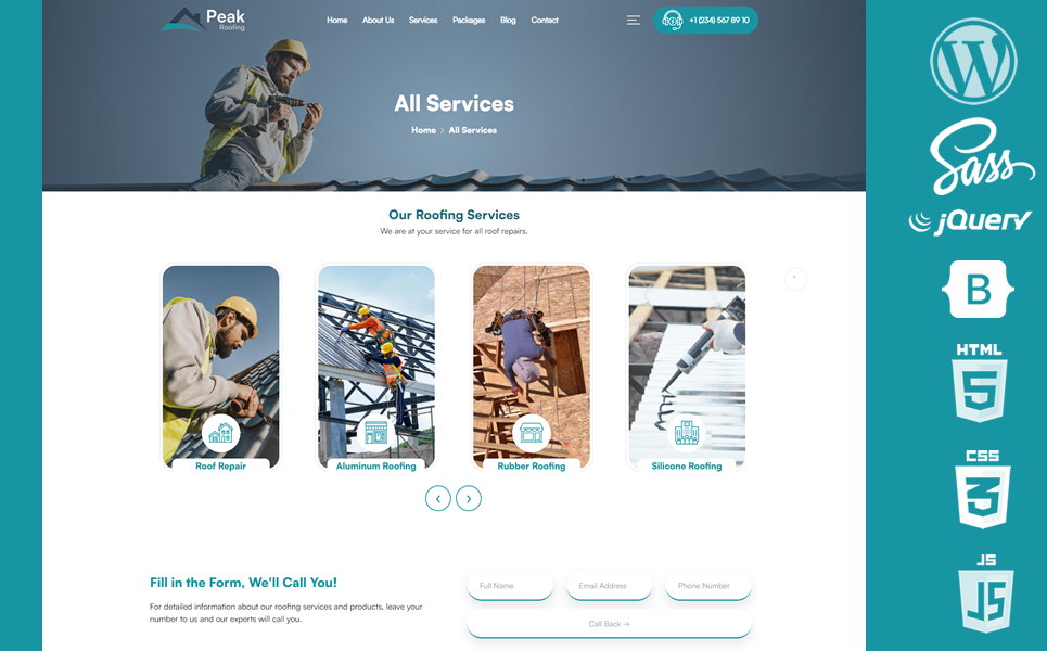 Peak WordPress Theme is a professional and legendary wordpress theme developed for anyone who provides Roofing Company, Roofer, Roof Repair, Roofing Services and All Construction Industry related services.