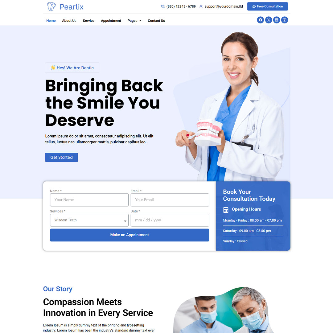 Pearlix - Dentist and Dental Clinic Elementor WordPress Theme