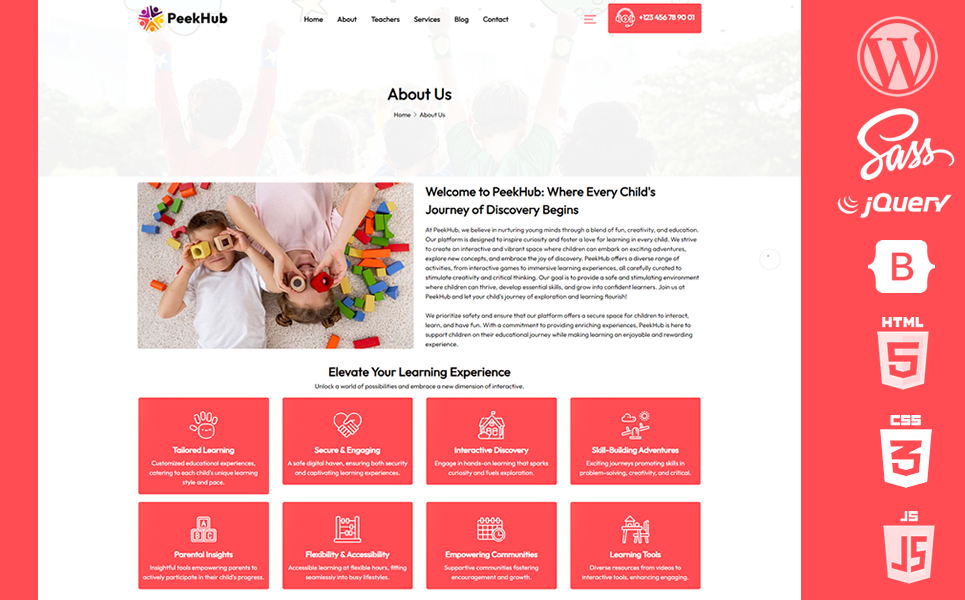 The PeekHub WordPress Theme is a meticulously crafted, cutting-edge theme designed specifically for childcare centers, preschool education, and academic institutions. It’s empowered by a range of modern, professional icons that underscore its clarity and visual impact, positioning PeekHub as a standout theme in the realm of educational WordPress themes. With PeekHub, effortlessly present your institution's essence, values, and offerings while embracing a captivating and distinctly unique web concept.
