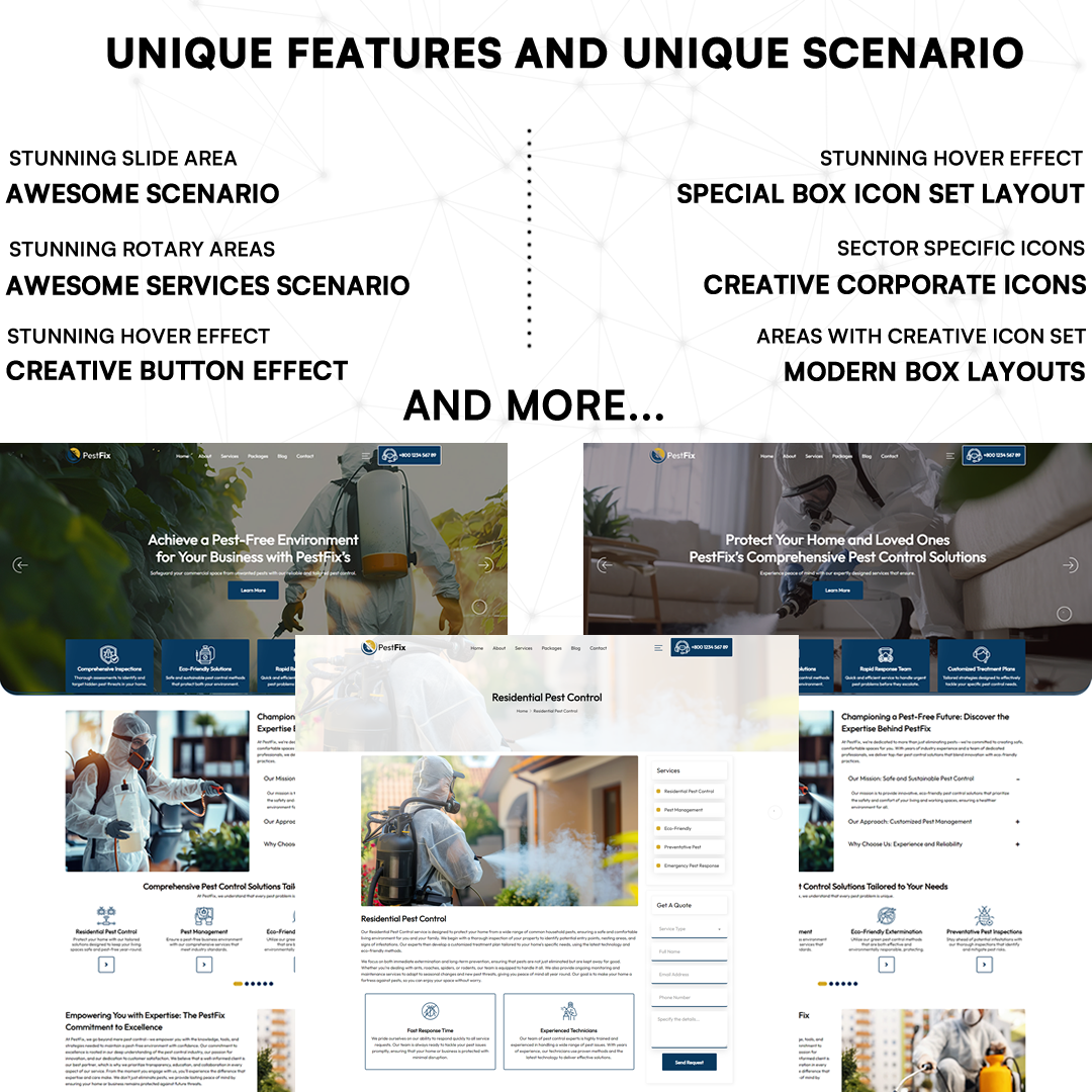 - 3D and Interactive Elements: From 3D image effects to an advanced 3D package display, PestFix incorporates the latest interactive technologies to engage users and keep them on your site longer.
