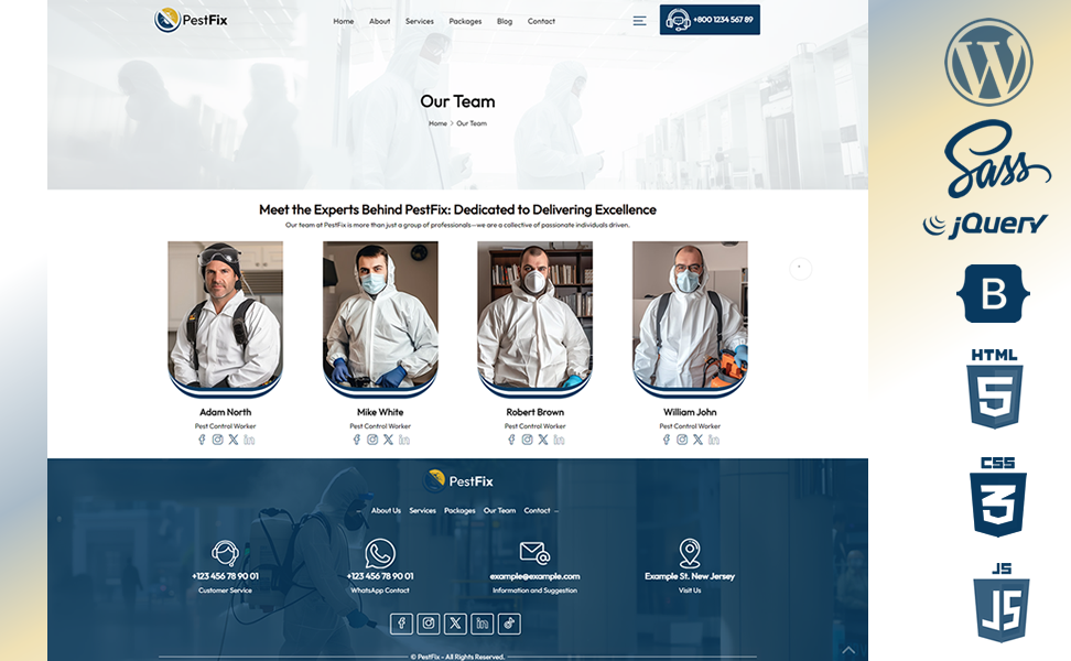- Special Team Pages with Custom Icons: PestFix comes with a dedicated team page that includes custom icons to represent each team member. This unique feature helps showcase your staff’s expertise and adds a personalized touch to your website.