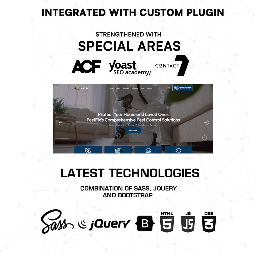 - WordPress: Built on the powerful and versatile WordPress platform, PestFix is easy to manage and highly customizable, with access to an extensive library of plugins.