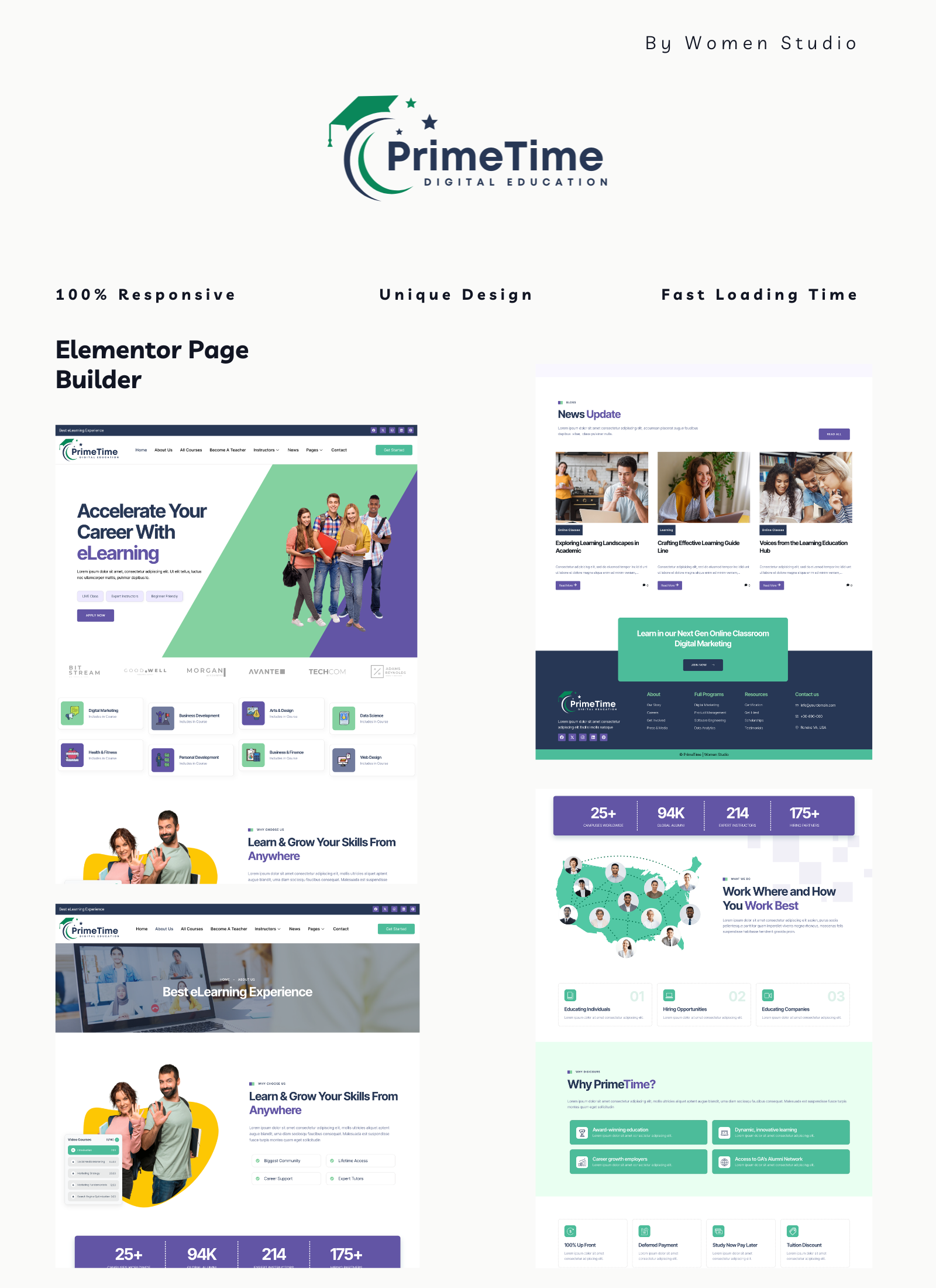 PrimeTime is a dynamic WordPress theme designed for online courses, seamlessly integrating with the Elementor page builder for a highly customizable and user-friendly experience. With PrimeTime, educators and course creators can effortlessly craft visually stunning and functional websites that cater to the needs of their students. The theme offers a range of pre-designed templates and modules fully compatible with Elementor, allowing for drag-and-drop customization without any coding knowledge. PrimeTime's responsive design ensures that courses look great on any device, enhancing accessibility and engagement. Features such as advanced course management, and interactive quizzes, make it an ideal choice for anyone looking to create a comprehensive and engaging online learning platform.