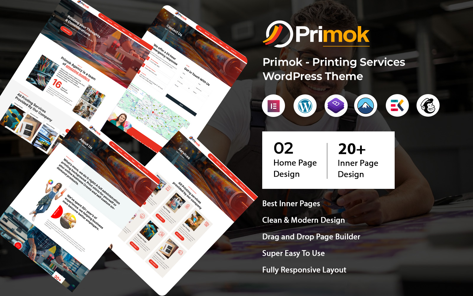 - Customizable Layouts: Primok comes with multiple demo layouts tailored to the needs of printing businesses, ensuring you can create a website that aligns with your brand. It offers a flexible drag-and-drop page builder (often integrated with Elementor) that simplifies the design process.