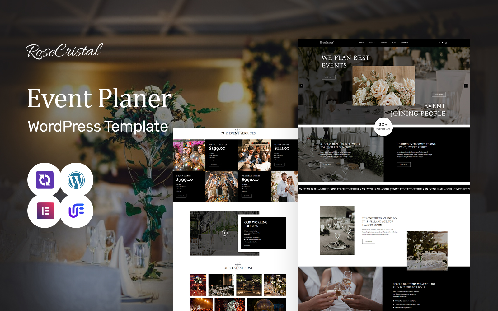 RoseCristal - Event Planner And Wedding Planner WordPress Elementor Theme WordPress Theme