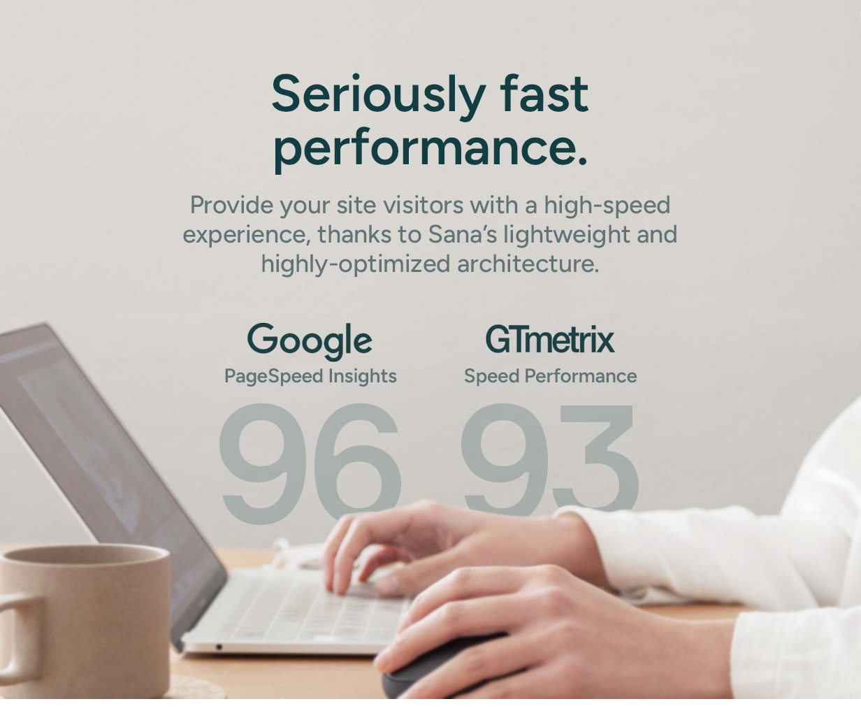 Seriously fast performance. Provide your site visitors with a high-speed experience, thanks to Sana’s lightweight and highly-optimized architecture.