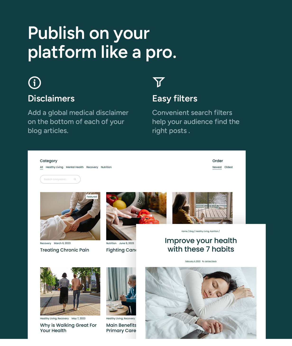 - Disclaimers - Add a global medical disclaimer on the bottom of all your published articles.