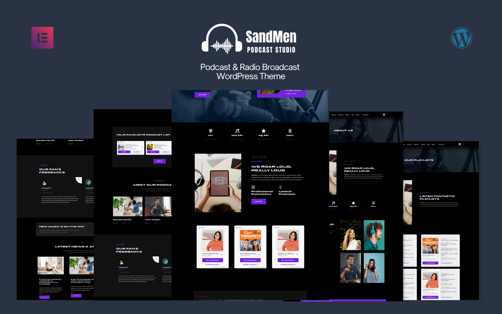 The SandMen Podcast Studio WordPress theme, powered by the Elementor page builder, is a cutting-edge solution for podcasters looking to create a professional and engaging online presence. This theme seamlessly combines the flexibility of Elementor's drag-and-drop interface with podcast-specific features, making it easy to design and customize your podcast website. With its intuitive design, you can effortlessly showcase your episodes, create visually appealing show notes, and build a loyal audience.