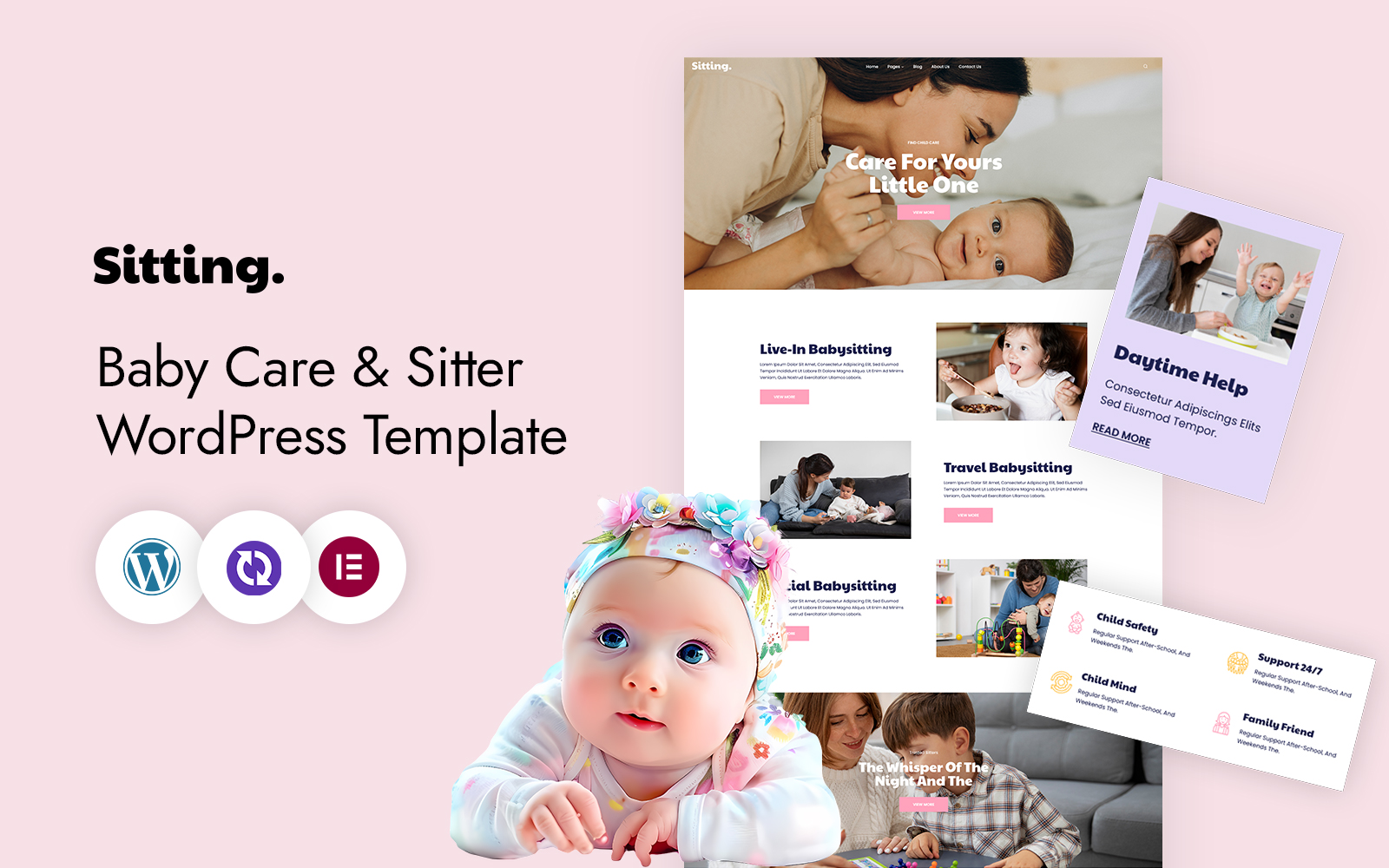 reate a nurturing online presence with the “Sitting” WordPress theme – designed specifically for baby care centers, babysitting services, and childcare professionals. This beautifully crafted theme blends warm visuals with user-friendly navigation to help parents instantly trust your brand.