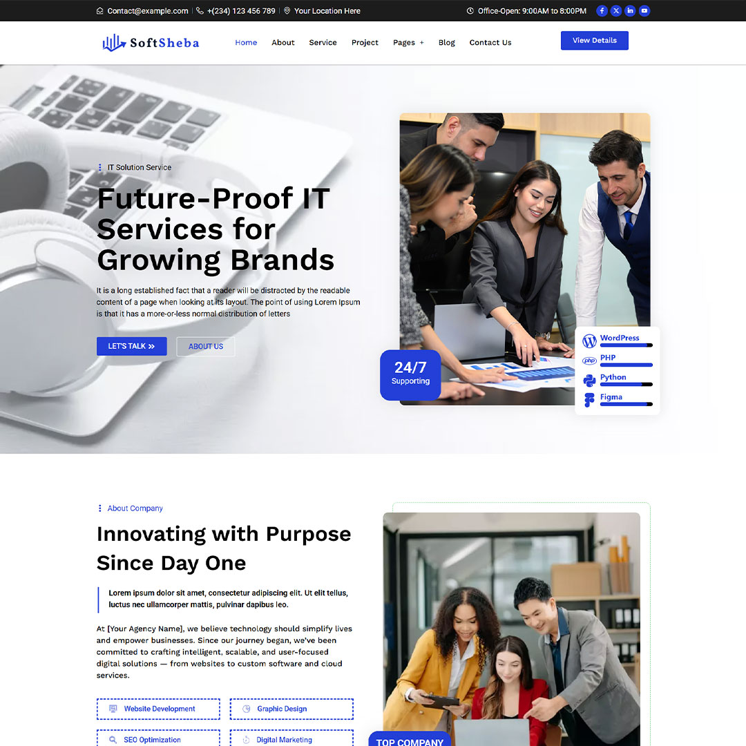 SoftSheba is a high-class and up-to-date WordPress theme mainly for companies that provide IT solutions, tech startups, and agencies in the online space. It utilizes Elementor, an editor of drag-and-drop type, which allows users to arrange pages as they want without the need for any programming. The features of the theme also include different samples of Home, Services, About, Portfolio, and Contact pages. As a result, it can adapt to any device, make the site visible to multiple people via search engine optimization, and be accessed through any major browser. Equipped with a beautiful design, faster loading time, and support of plugins such as ElementsKit, SoftSheba offers a wide range of functionalities that can fit any project requirements.