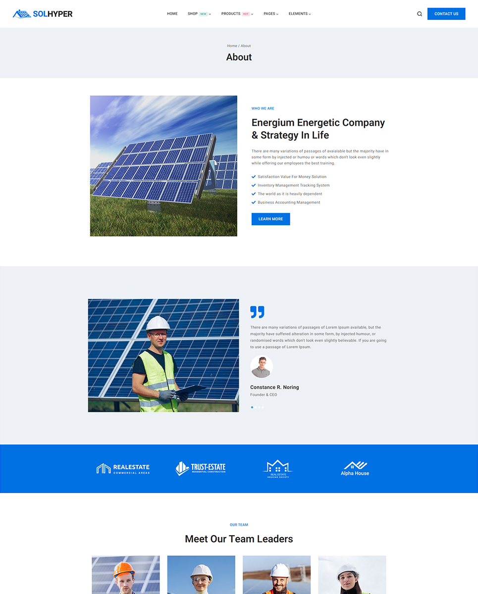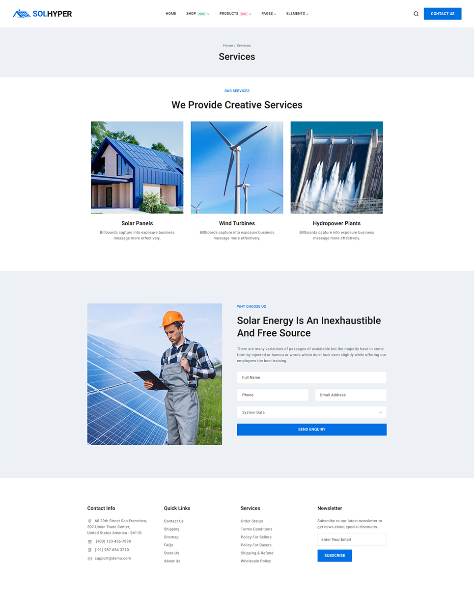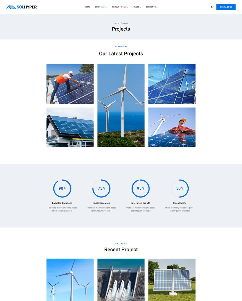 Solhyper WordPress theme created for Solar Panel, Sustainable, Wind and Solar Power, and other related company websites. With our theme, we employ the elementor page builder, one of the most effective with an editor that supports drag and drop. It contains a customizer feature that allows you to drag and drop elements to customize the header and footer. We offer every feature necessary to use the theme to create a better website.