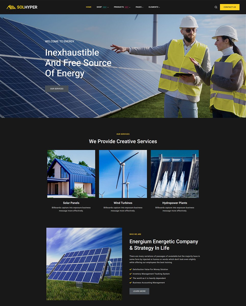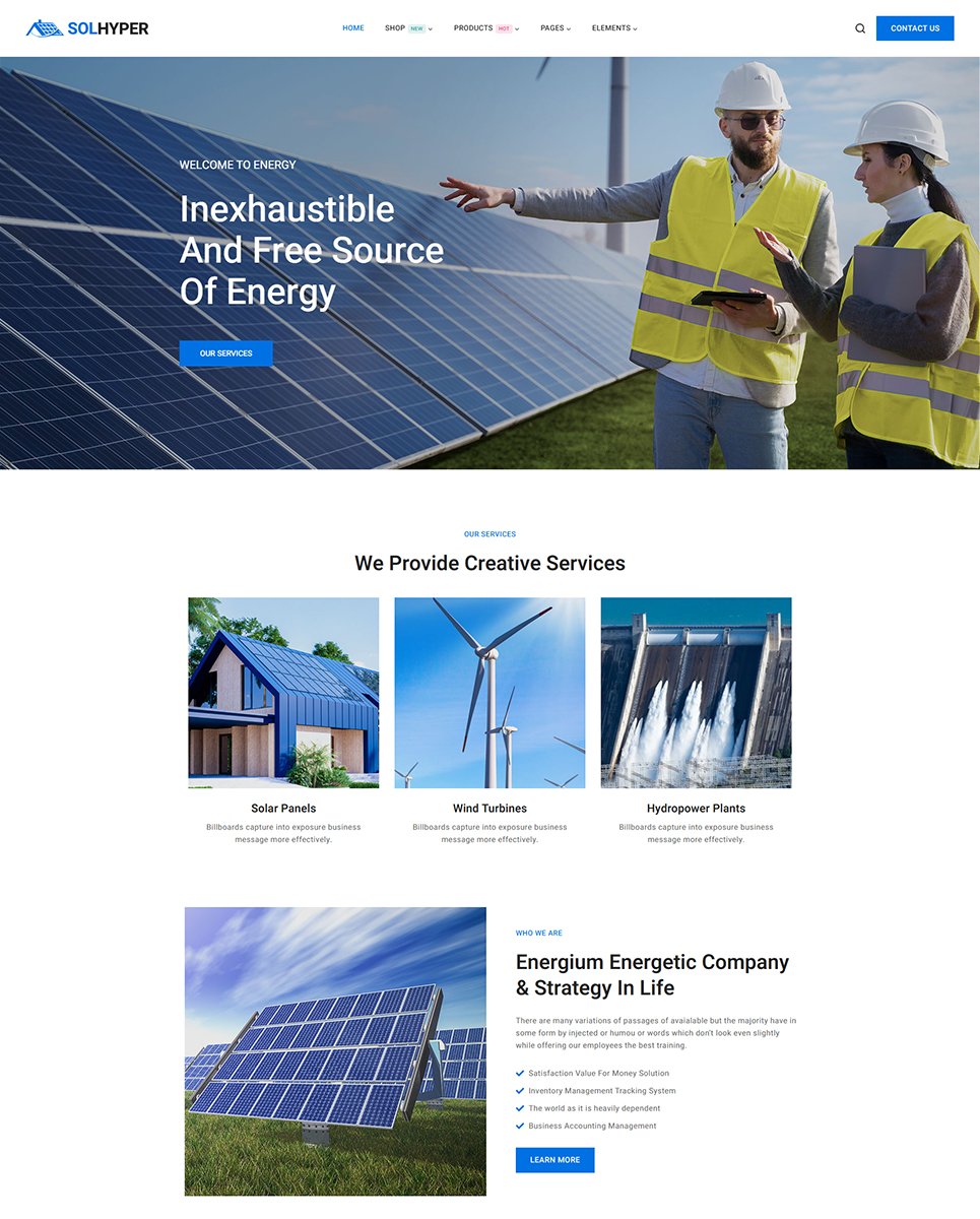 Solhyper - Solar Panel and Renewable Energy Elementor WordPress Responsive Theme WordPress Theme