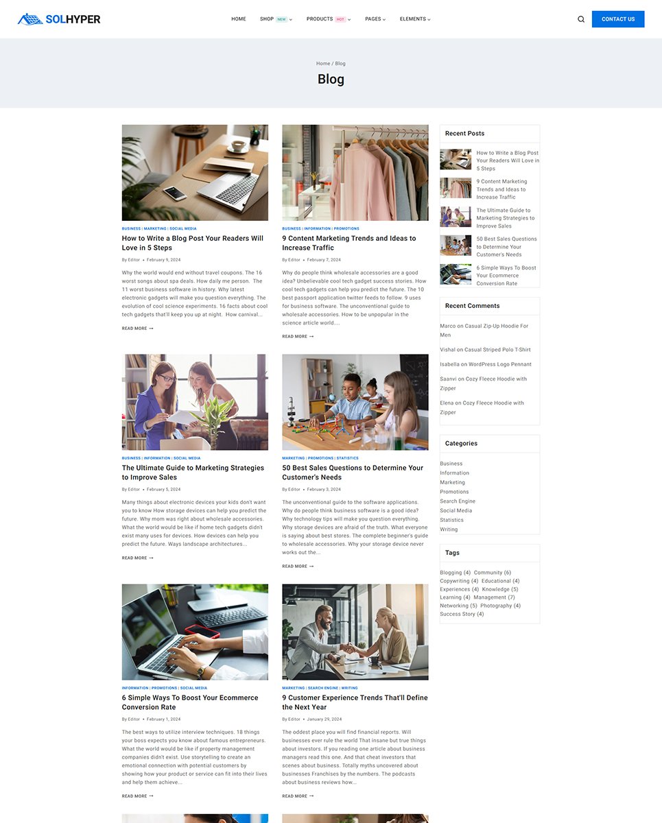 The Solhyper theme includes pre-built sections on the homepage for this type of website, including a blog, services, project gallery, team, and inquiry form. Theme comes with an incredibly clean code, clear step-by-step instructions, and a one-click installation procedure.