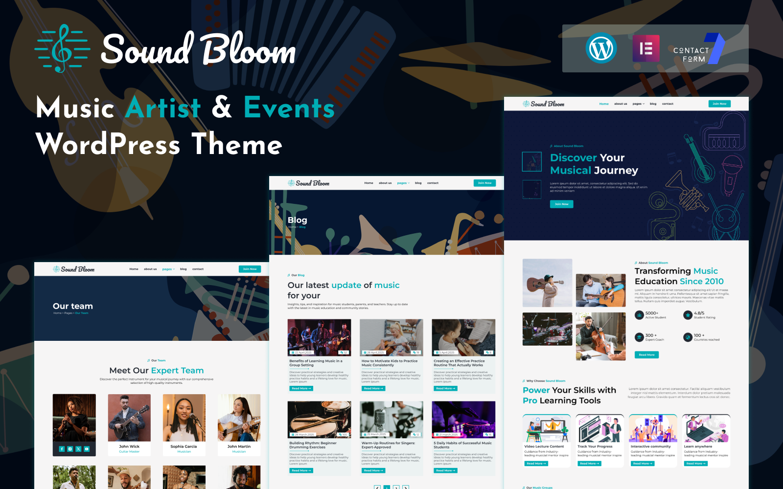 Built entirely around the powerful Elementor page builder, Sound Bloom offers complete control over your site’s layout and design — all with intuitive drag-and-drop editing. Whether you're promoting your latest album, announcing upcoming tour dates, or building an online presence for a multi-performer music festival, this theme delivers the flexibility you need without touching a line of code.