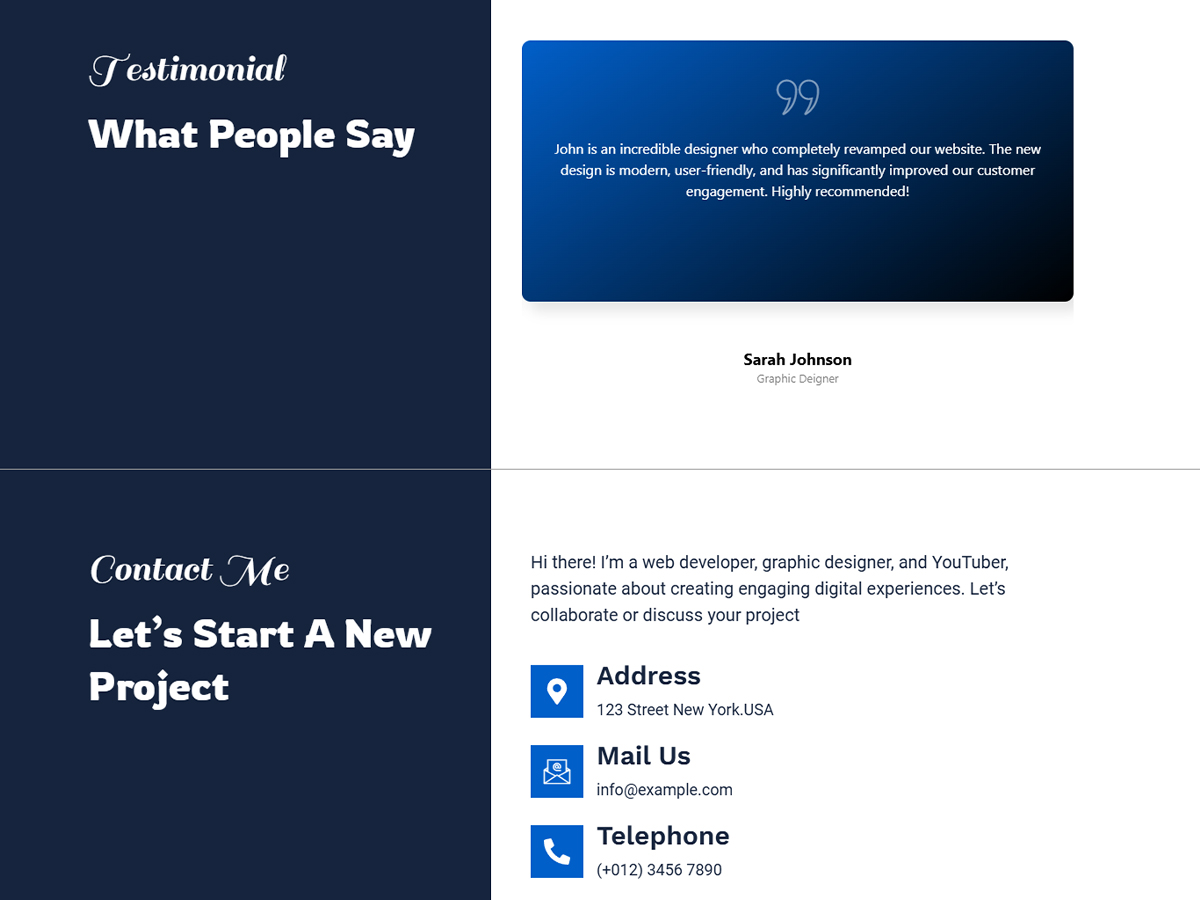 The integrated contact form and strategically placed call-to-action buttons ensure that potential clients or employers can easily reach out to you. These features enhance user interaction and boost conversion rates.