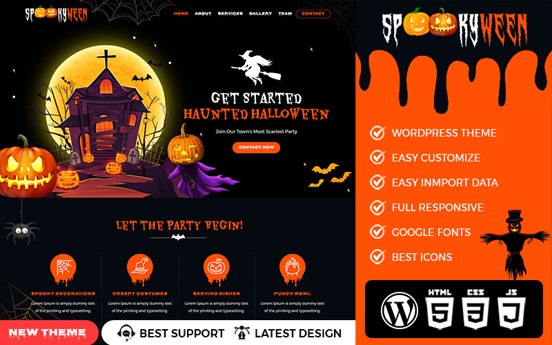 SpookyWeen is a Halloween WordPress premium theme. Designed with black and orange colors and spooky animations gives a perfect Halloween feeling of fun and joy. Perfect Halloween theme for your website and agency.