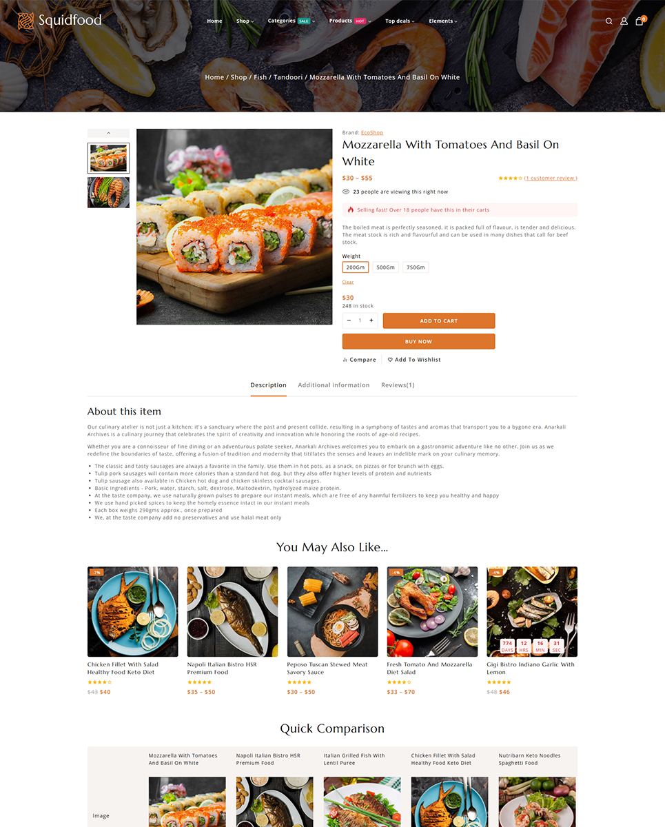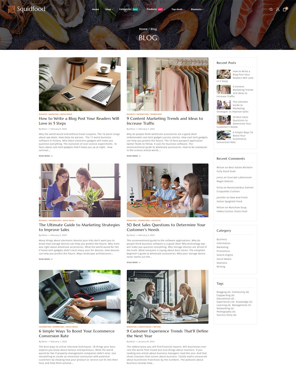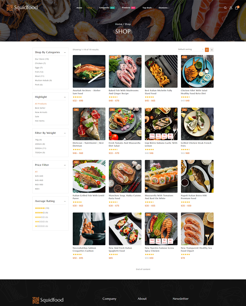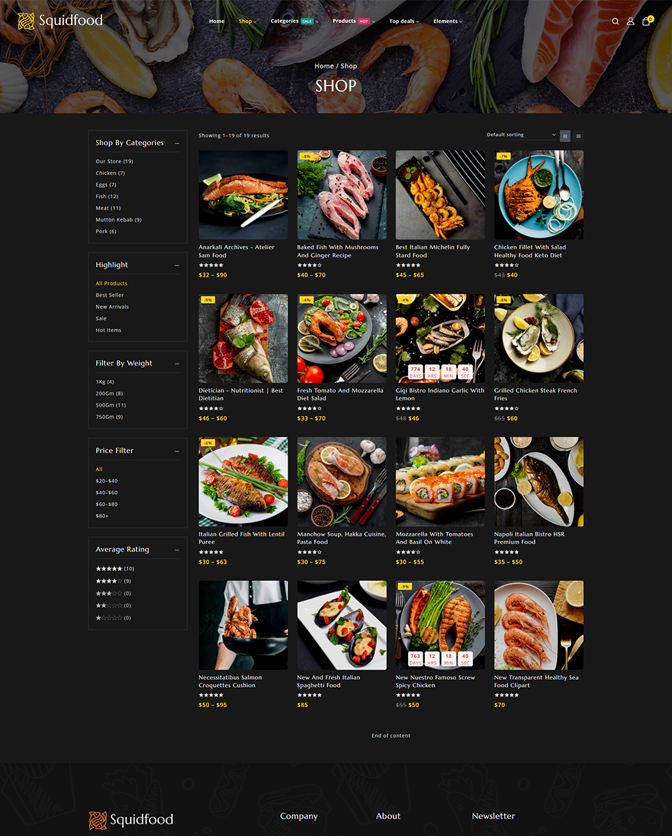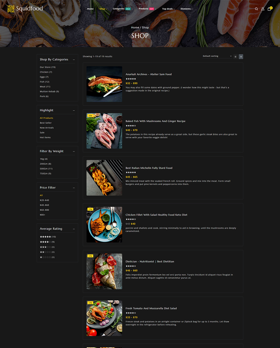 Squidfood - Food and Restaurant Store Elementor WordPress Responsive Theme WordPress Theme