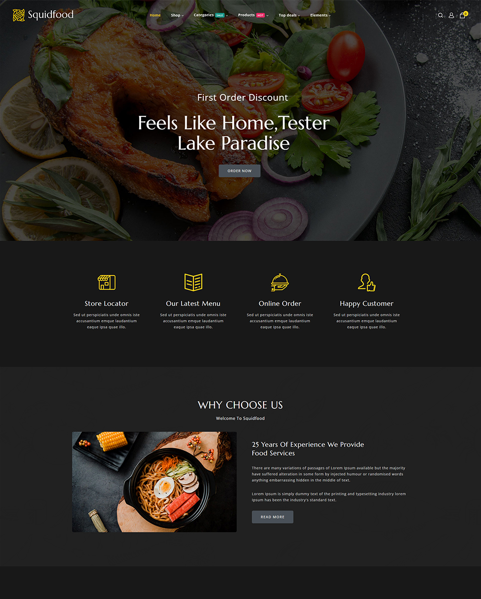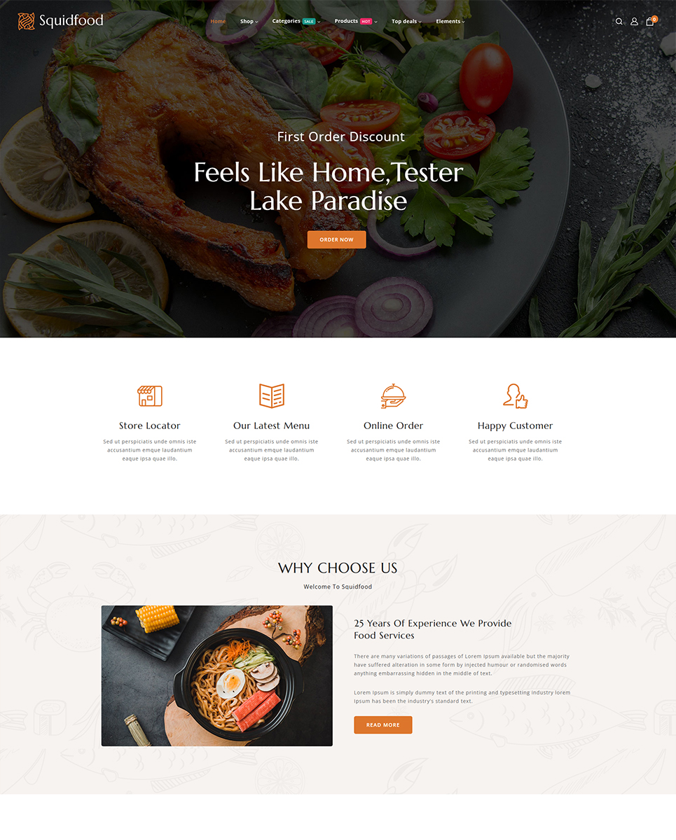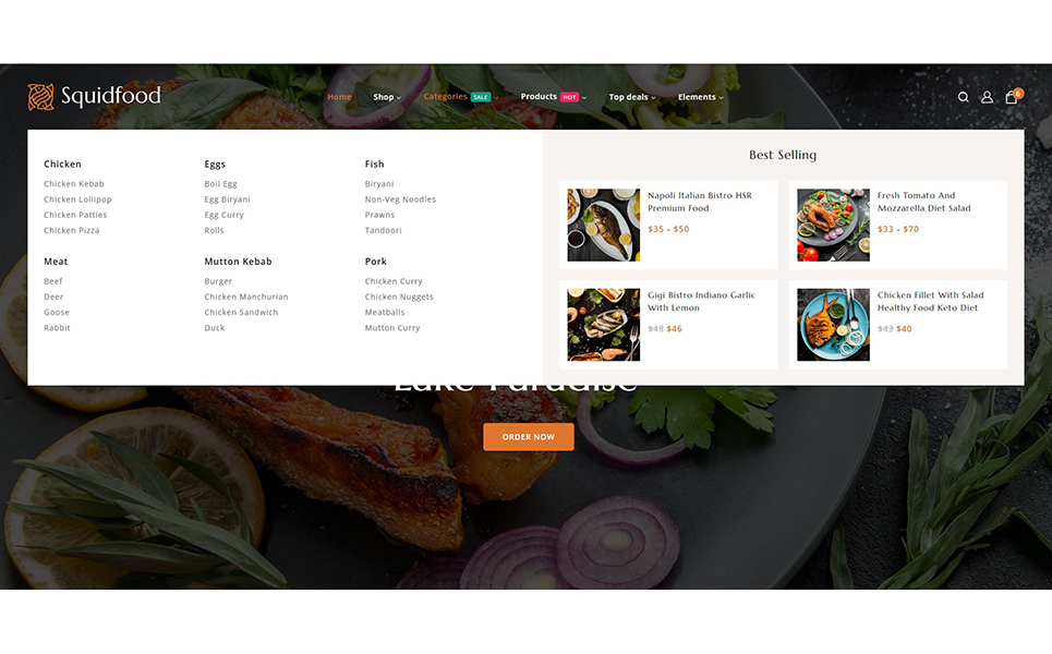 Squidfood wordPress theme is a specially designed for restaurant food, online food store, fast food, organic products, Food blog or any other food-related website. It's fully responsive that your store will display beautifully on any devices.