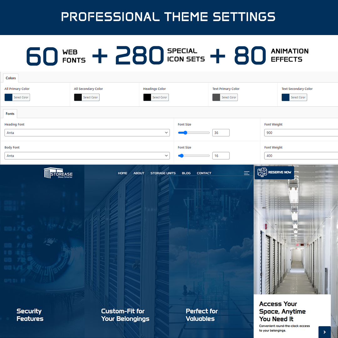 StorEase isn’t just a theme; it’s a comprehensive solution for modern self-storage businesses aiming to build lasting relationships with their clients. Offering a smooth, visually captivating experience and extensive customization, StorEase is designed to grow with your business. It empowers you to showcase your services professionally, manage bookings seamlessly, and make a powerful impression on every visitor. Invest in StorEase and elevate your online presence with a theme that prioritizes both function and style.