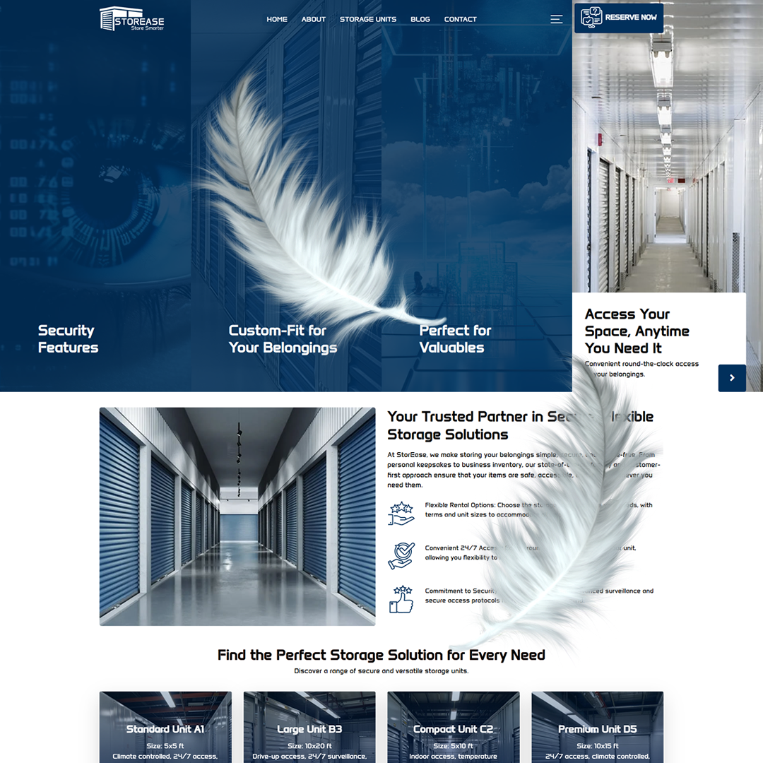 - Comprehensive Storage Reservation System: StorEase offers a sophisticated reservation form that enables clients to book their storage units quickly. This feature simplifies the booking process by allowing users to select unit types, dates, and personal preferences for an optimal customer experience.