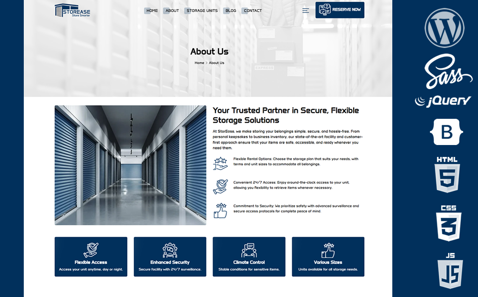 StorEase is a versatile, user-friendly WordPress theme specially designed for self-storage and facility management businesses aiming to establish a professional, organized, and inviting online presence. With a streamlined interface and impressive design, StorEase offers a unique blend of powerful features and visually engaging elements. Every aspect of StorEase is crafted to create a seamless, secure, and appealing experience for clients looking for reliable storage solutions.