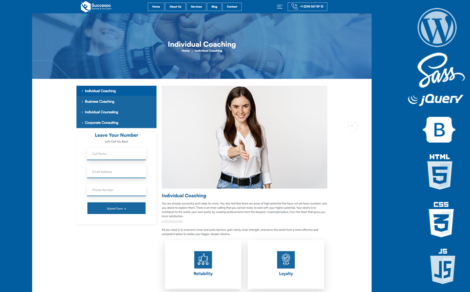 Successo WordPress Theme is unique wordpress theme designed for Business Coach, Life Coach, Personal Consulting, Corporate Consulting and All Corporate Business.