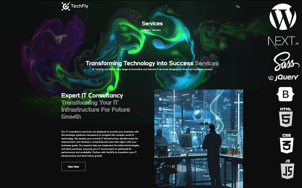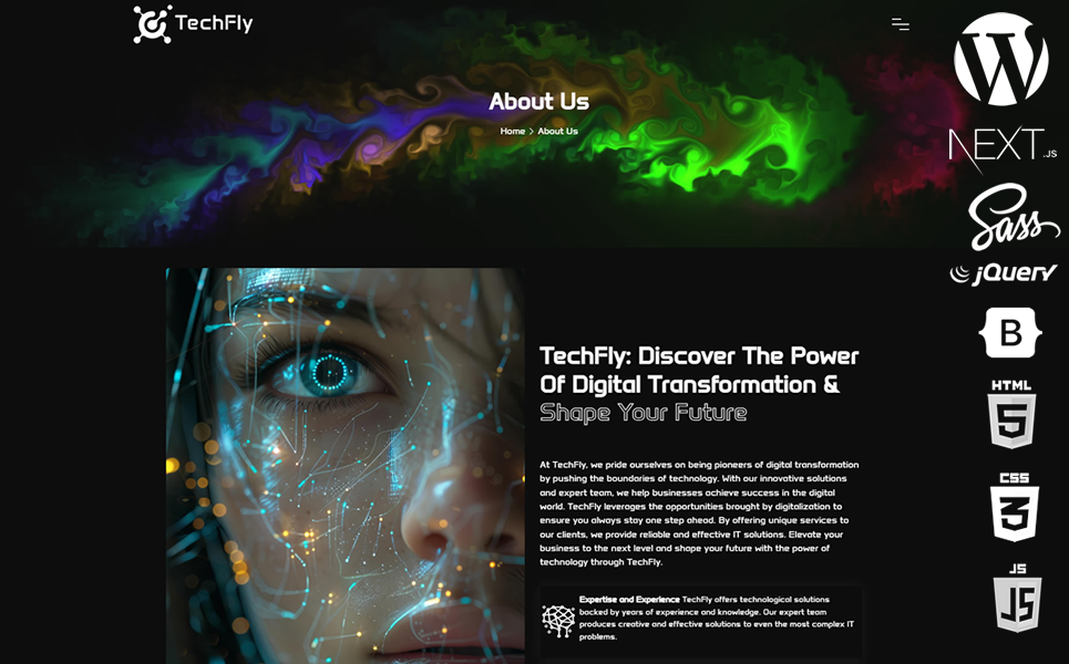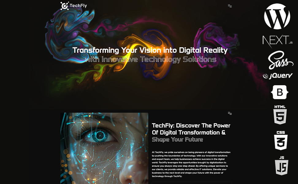 Welcome to TechFly, an extraordinary IT agency theme built to showcase your digital prowess with unparalleled style and sophistication. This theme is designed using cutting-edge WebGL and Next.js technologies, ensuring a seamless and immersive user experience that will captivate your audience from the moment they land on your site.